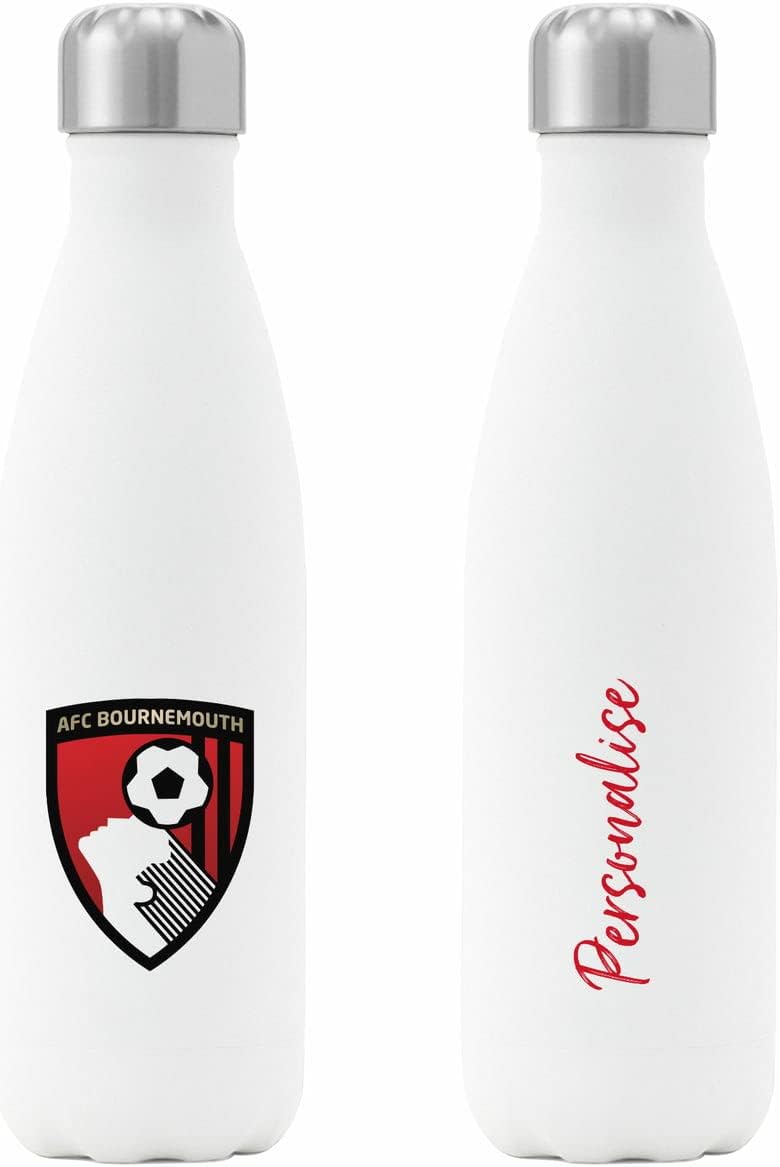 This white double insulated slimline water bottle intended for AFC Bournemouth fans can be personalised with name up to 12 characters.