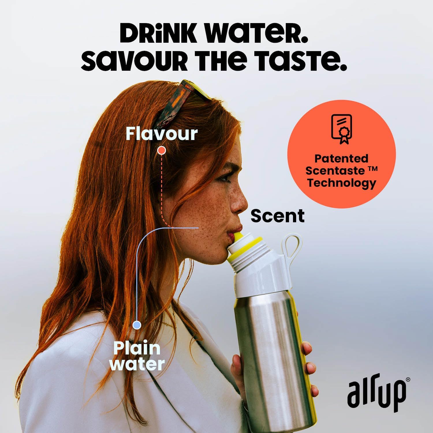 YOUR ORIGINAL AIR UP STARTER SET INCLUDES the new air up drinking bottle in the colour silver plus a FLAVOR 5 tasting set of 5 air up pods in our most popular flavours: Mango-passion fruit, iced tea peach, cassis, lime and cherry kola…
