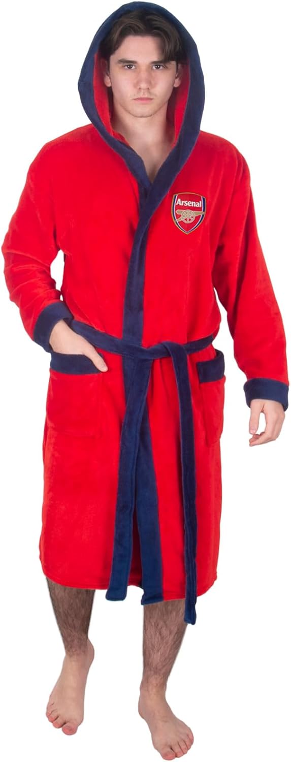 Arsenal FC Mens Dressing Gown Robe Hooded Fleece OFFICIAL Football Gift