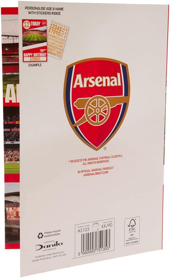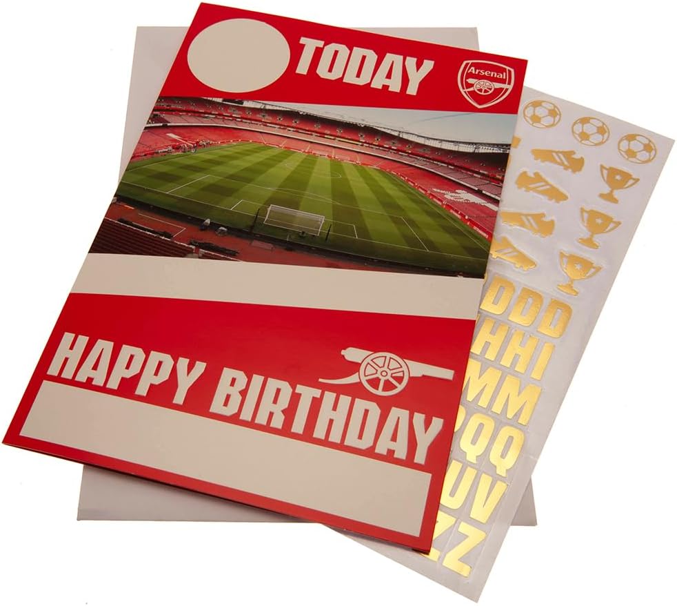 Arsenal Football Club Birthday Card. Comes with Stickers to Personalise your Age and Name, Red