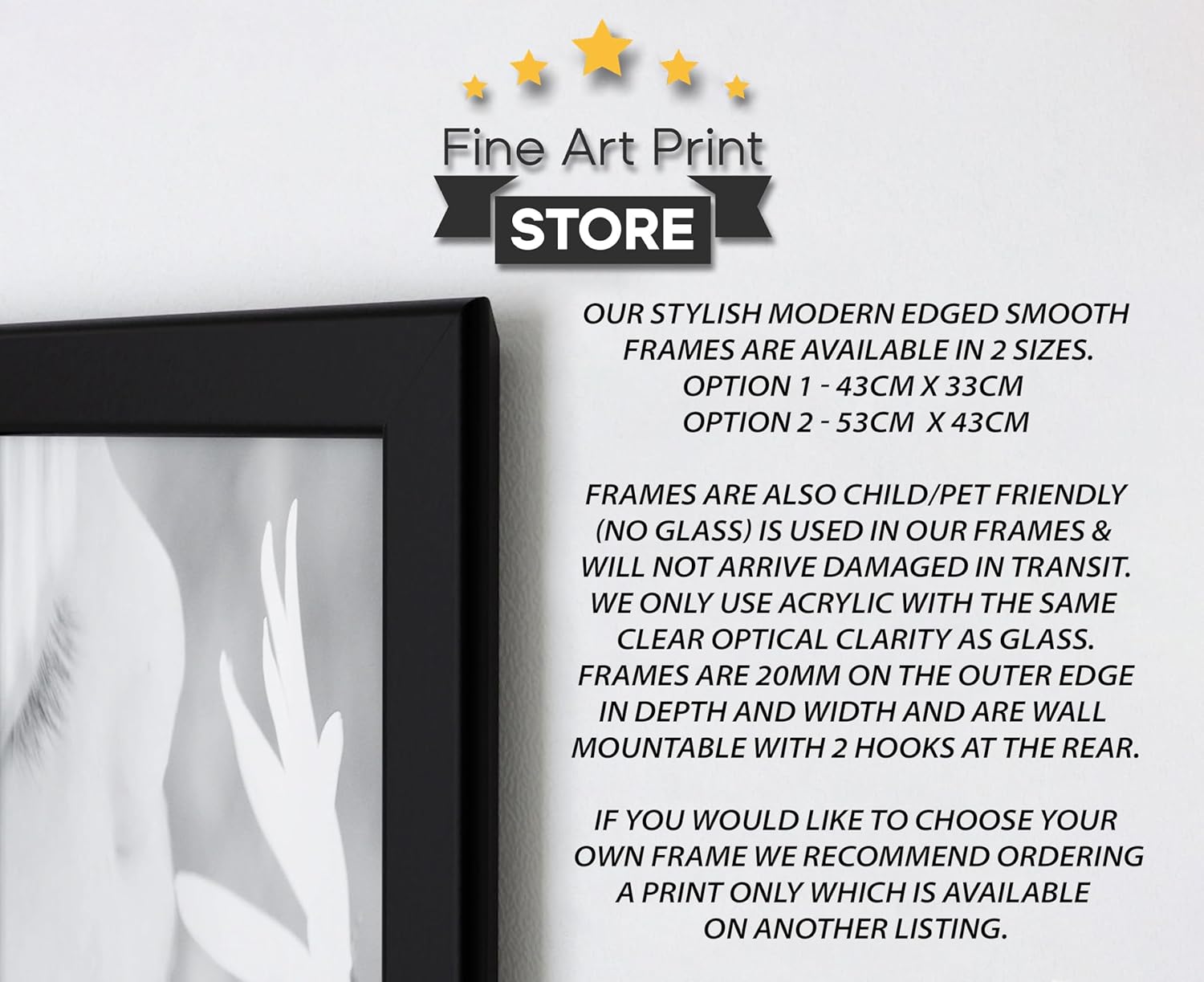 FRAMED PRINT : High Quality Black Wooden Frame available in 2 different sizes with a ready to hang rear hook.