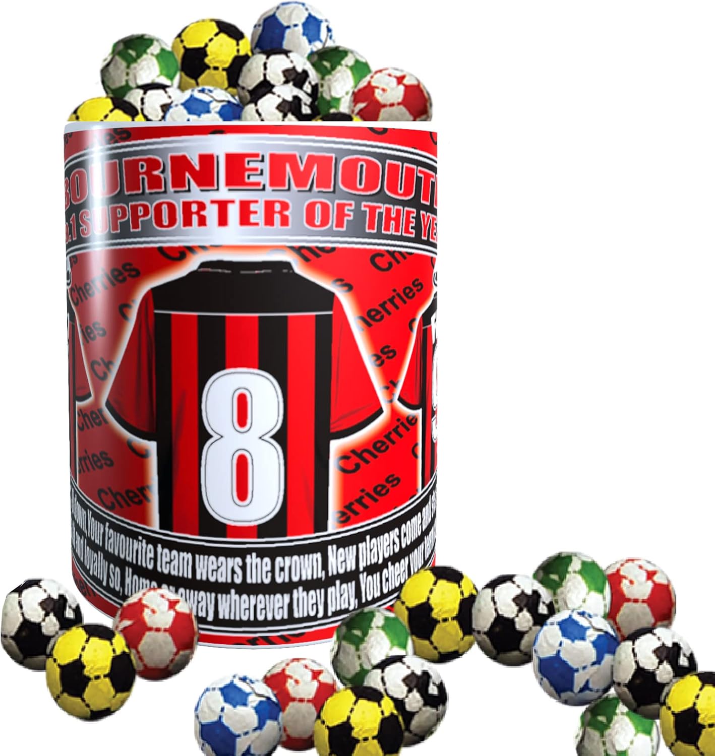 Bournemouth Football Team Shirt Mug Gift with Chocolate Footballs