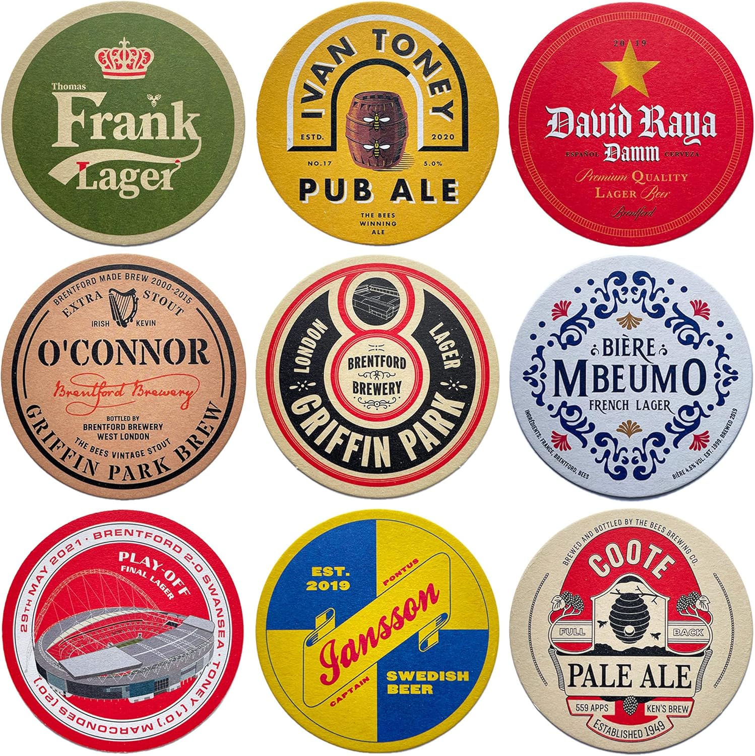 9 Brentford Beer Mats
