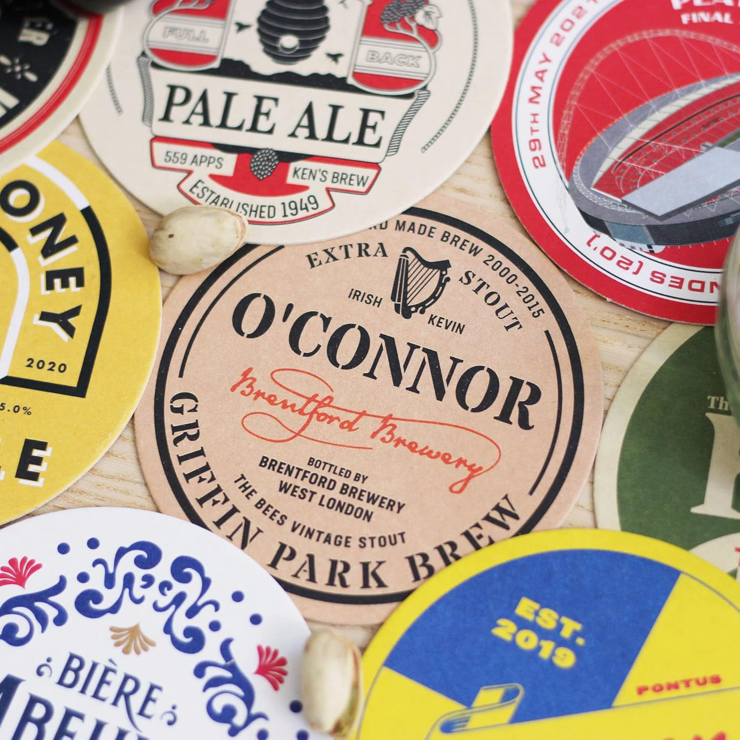 Each pack of beer mats contains 9 unique Brentford designs inspired by the players, their nations, moments in the club’s history and the previous home of The Bees, Griffin Park