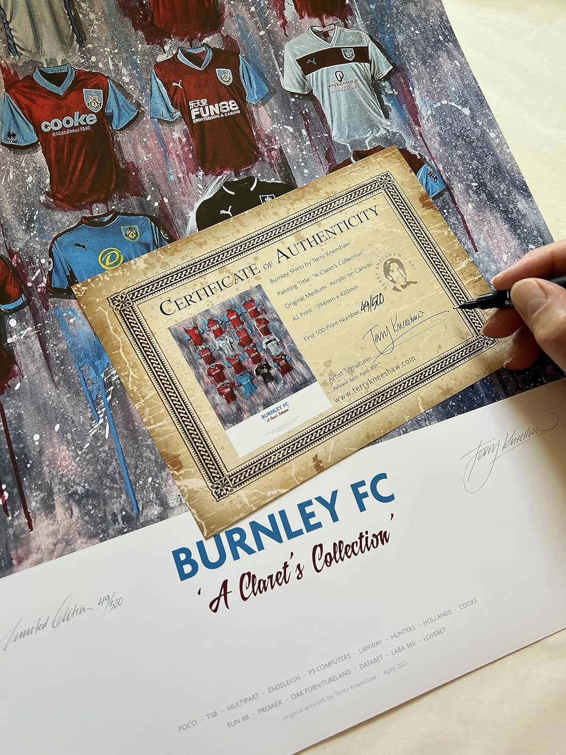 Burnley FC – The Claret’s Collection Poster Print A2 Limited Edition Unframed – Team Shirt Print – Premium Quality – By Terry Kneeshaw