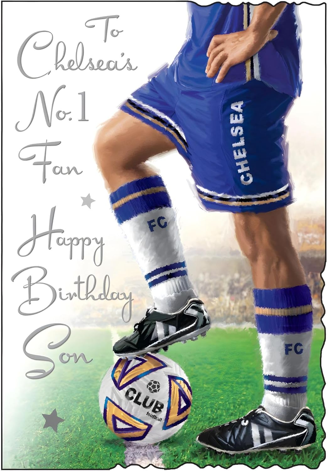Chelsea Birthday Card for Son – Football Design – Chelsea’s No.1 Fan – Special Finishes and Illustrated Insert Leaf – Made in the UK