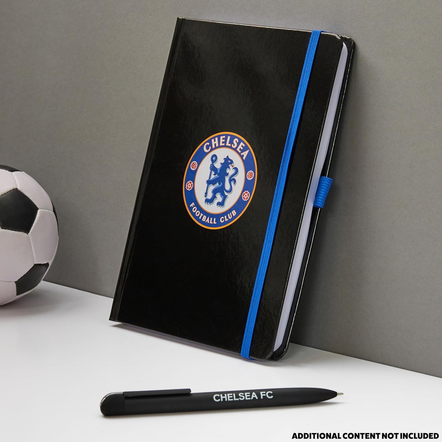 Official Chelsea F.C. merchandise featuring a durable notebook with lined pages and a sleek ballpoint pen with black ink. Both items proudly display the Chelsea crest, making them perfect for notes, sketches, and showing team spirit.