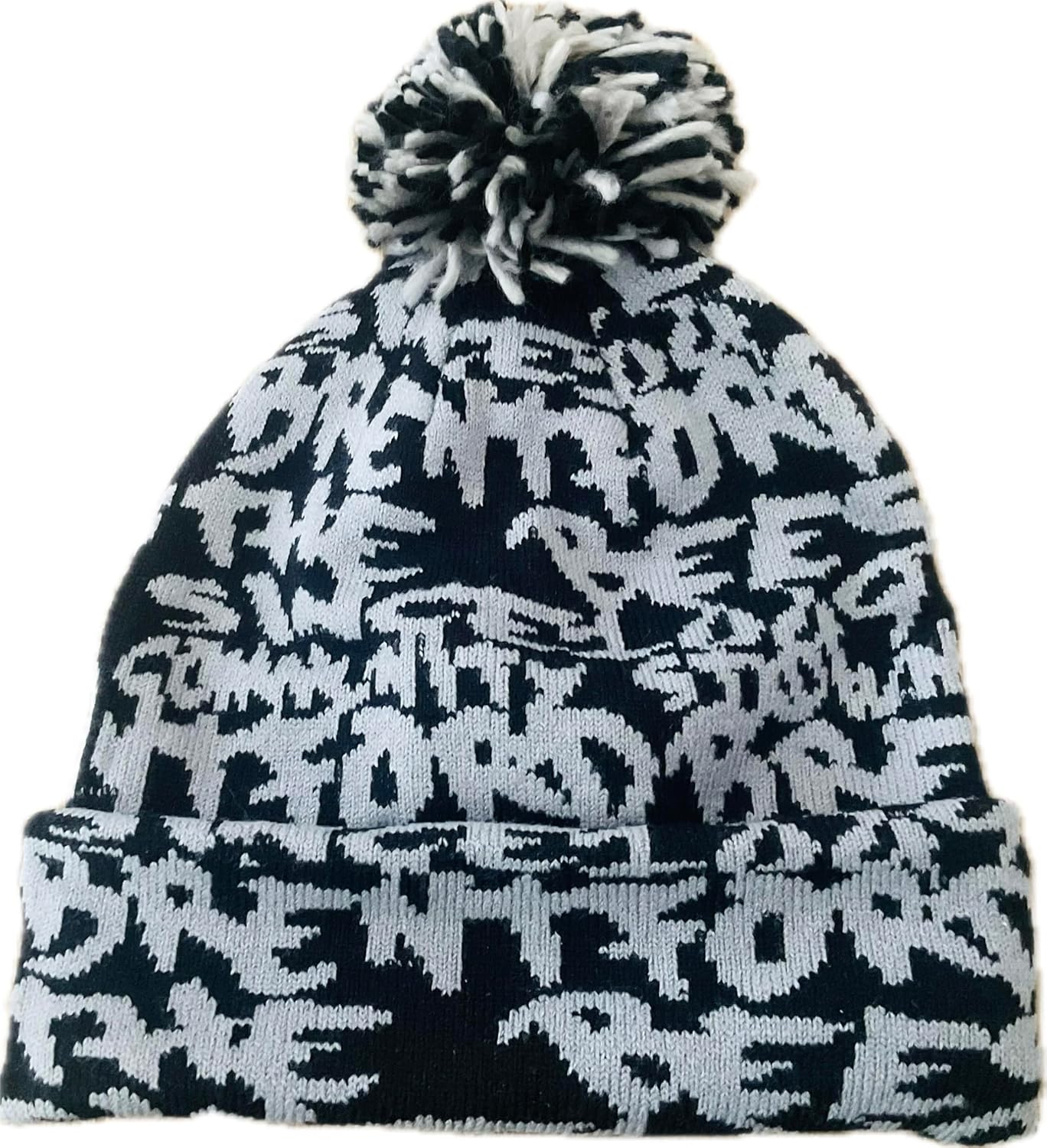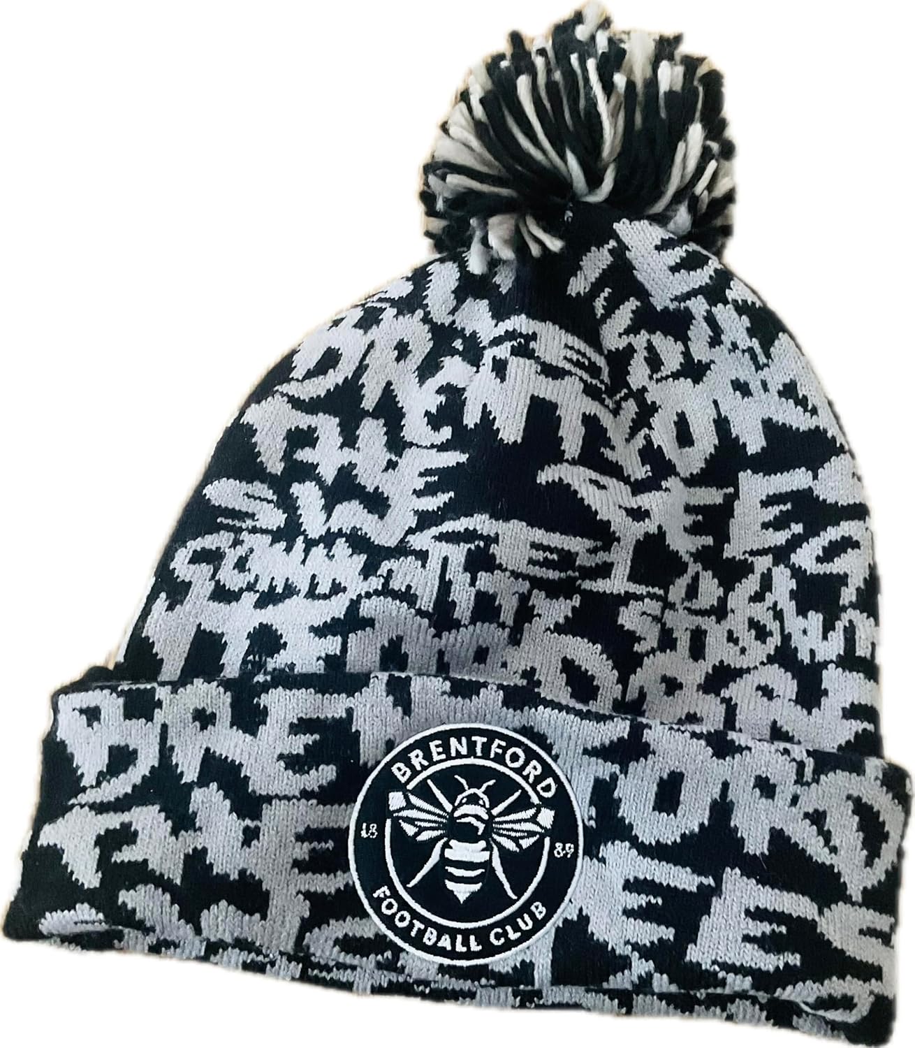 Compatible with Brentford FC Official Graffiti Pattern Bobble Hat, Black and Grey