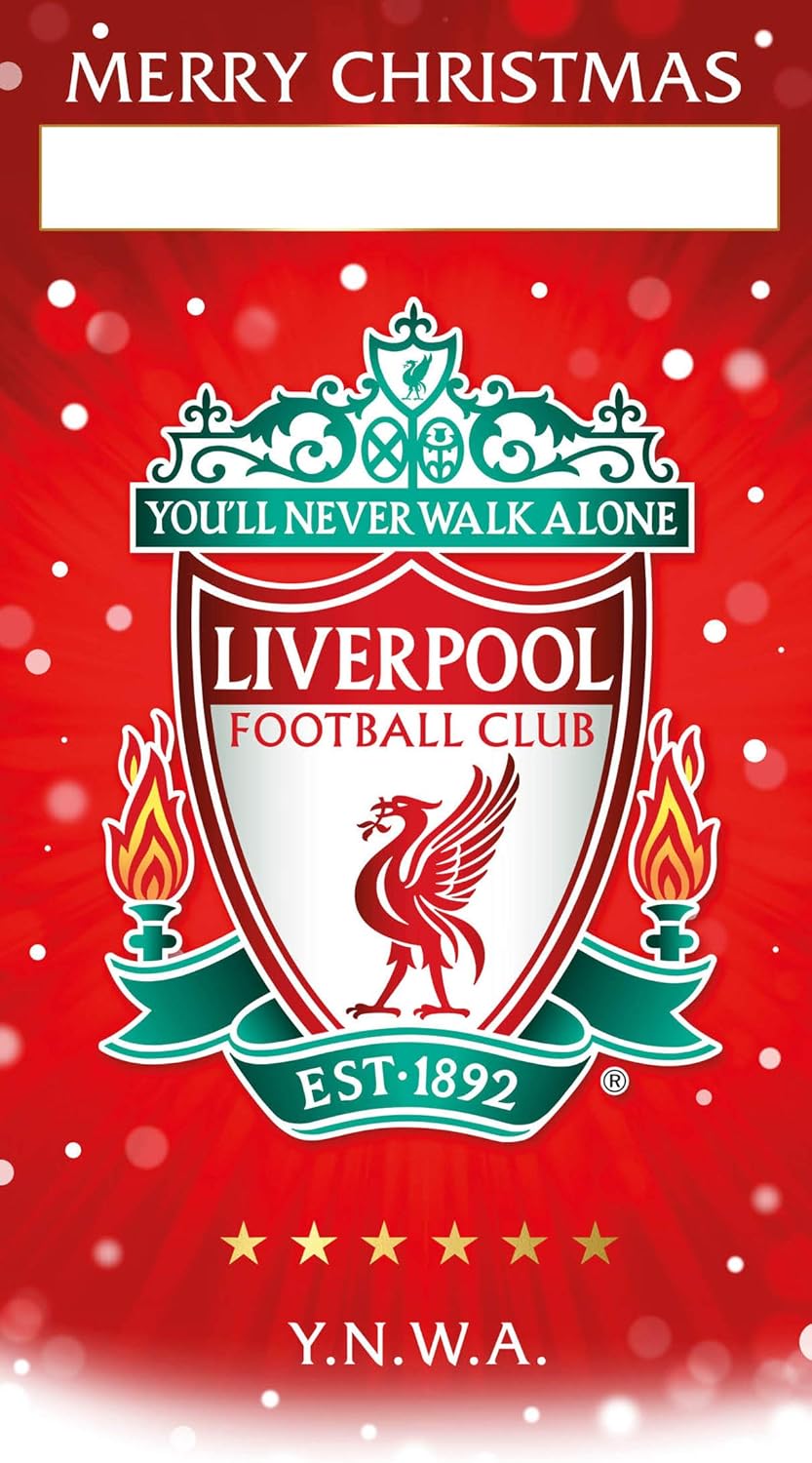 Gift this Official Liverpool FC Christmas card to your Liverpool fan. This bright red card features the Liverpool FC emblem as well as “Merry Christmas” printed above blank space for you to personalise the card! There is plenty of space on the inside of the card for you to send your Christmas wishes.