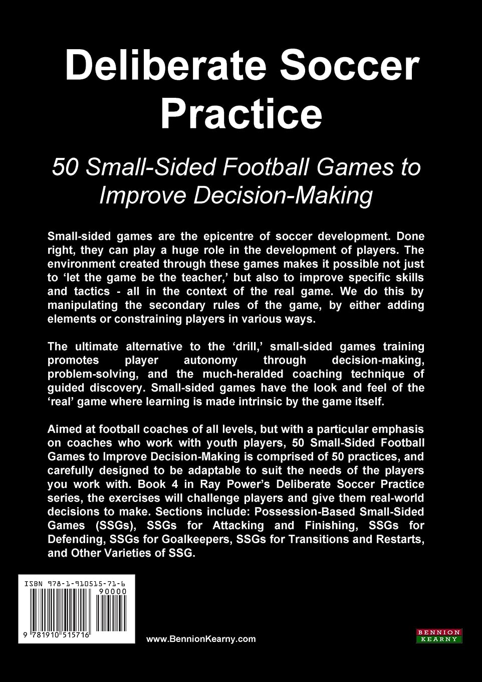 Aimed at football coaches of all levels, but with a particular emphasis on coaches who work with youth players, 50 Small-Sided Football Games to Improve Decision-Making is comprised of 50 practices, and carefully designed to be adaptable to suit the needs of the players you work with. Book number four in Ray Power’s “Deliberate Soccer Practice” series, the exercises will challenge players and give them real-world decisions to make. Sections include: Possession-Based Small-Sided Games (SSGs), SSGs for Attacking and Finishing, SSGs for Defending, SSGs for Goalkeepers, SSGs for Transitions and Restarts, and Other Varieties of SSG.