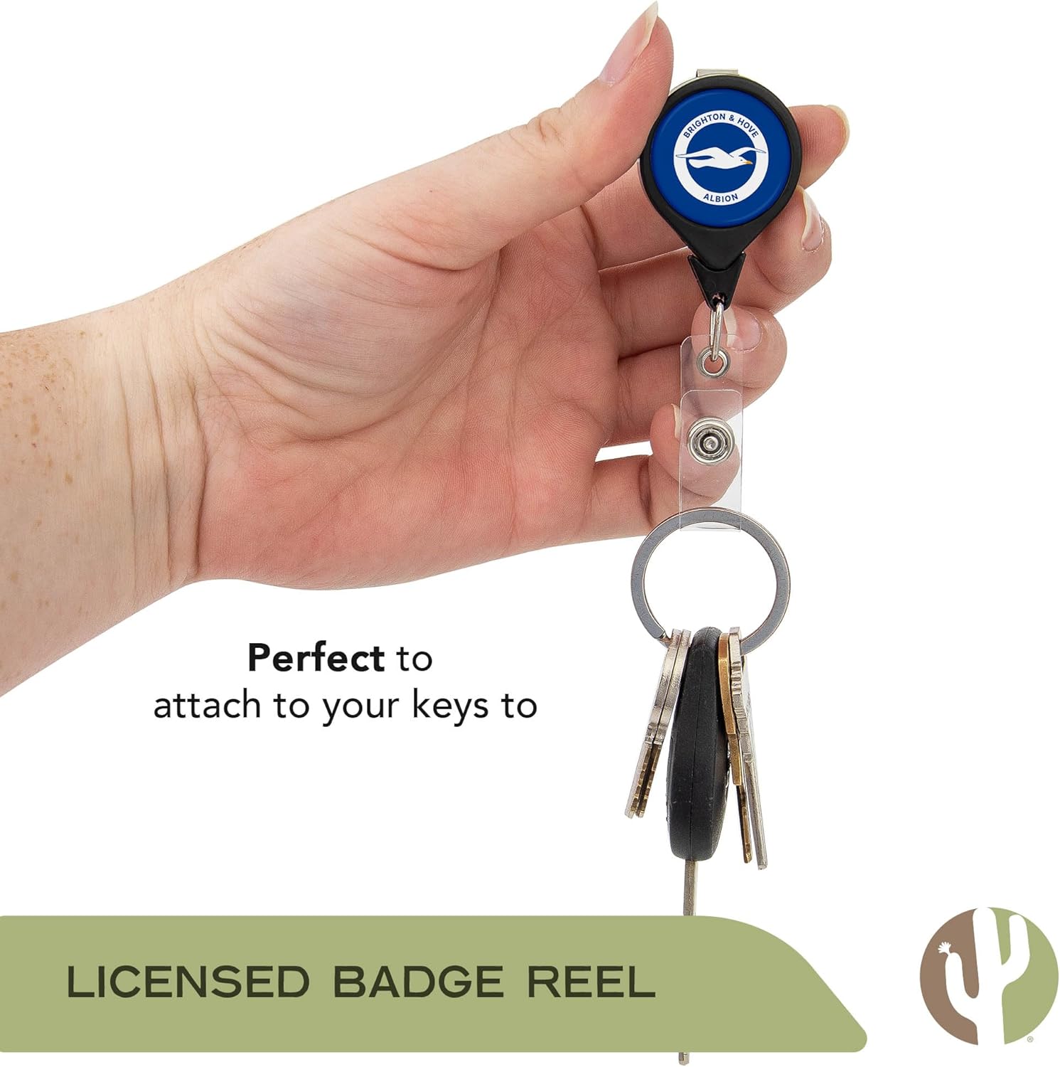Desert Cactus Brighton & Hove Albion Retractable Badge Holder BHAFC Seagulls Football Club Soccer ID Reel with Ticket Clip for Lanyard, Work, School & Office Access Official Fan Gear (Design A)