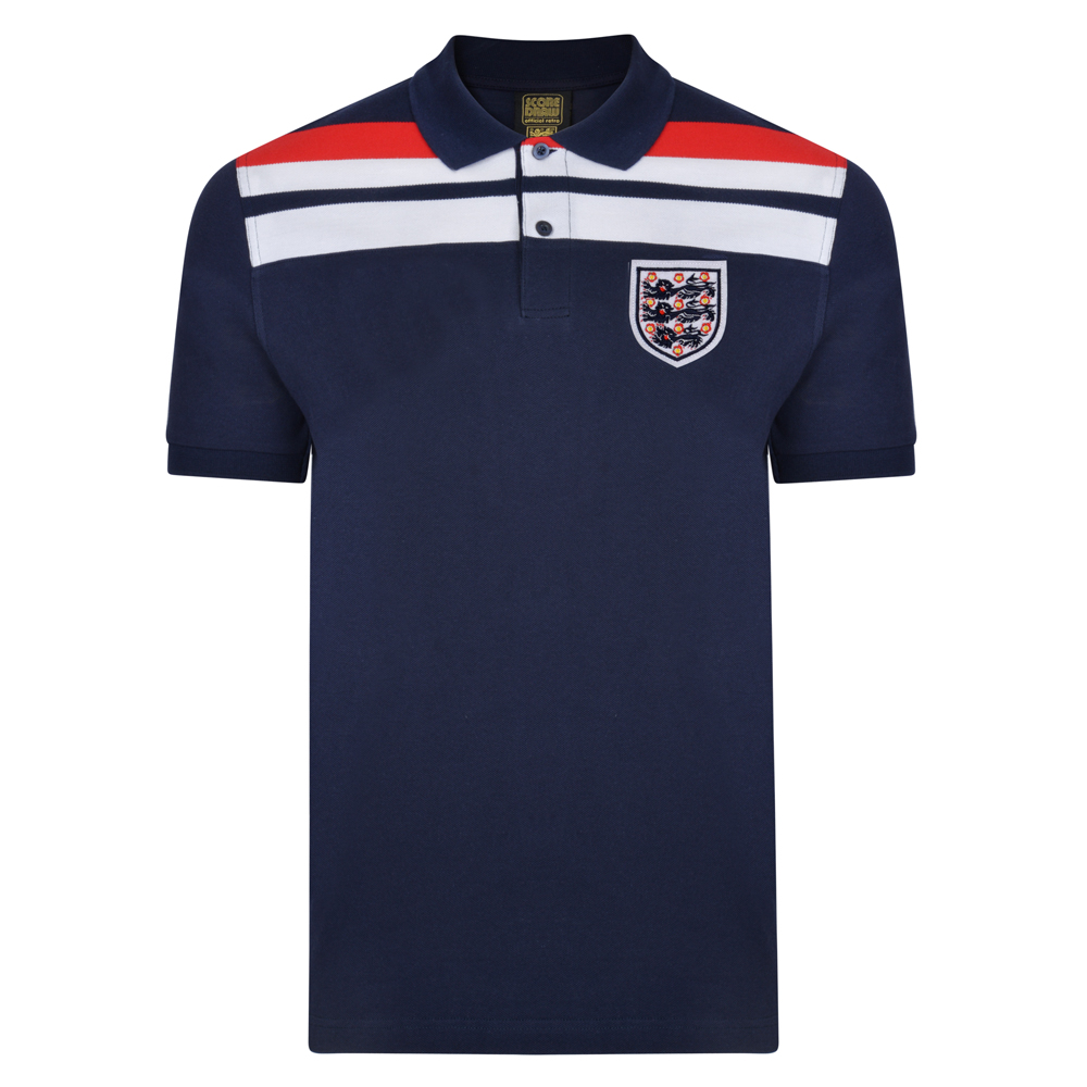 England 1982 Empire Navy Polo Shirt Get kitted out for the 2022 World Cup with this officially licensed England retro polo shirt. Officially Licensed Heritage Retro Sportswear Collection produced by Score Draw England Three Lions Logo. Inspired design from 1982 England football shirt. 100% Cotton.