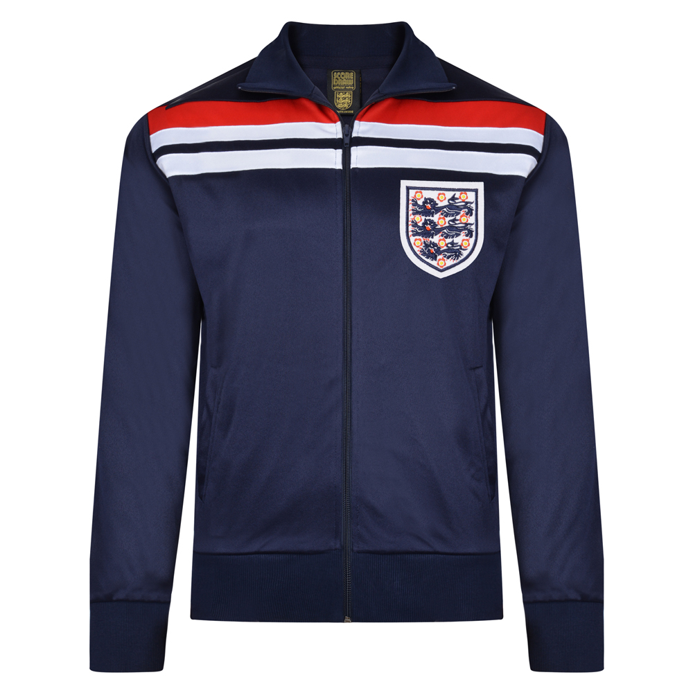 England 1982 Empire Navy Track Jacket Get kitted out for the 2022 World Cup with this officially licensed England track jacket Officially Licensed Heritage Retro Sportswear Collection produced by Score Draw England Three Lions Logo. Admiral inspired design from 1982 England football shirt. 100% Polyester