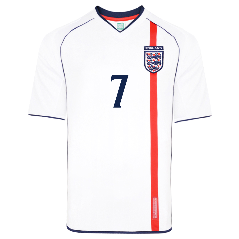 England 2002 No 7 Retro Football shirt Get kitted out for the Euro 2024 with this officially licensed England retro football shirt. This classic England shirt was worn by David Beckham during the 2002 World Cup hosted by Japan & Korea. England started the group stage with a 1-1 draw against Sweden, before beating Argentina 1-0 thanks to a famous David Beckham penalty – the perfect way to redeem himself 4 years after the regrettable red card at France 98. A 0-0 draw in the final group game against Nigeria was enough to see the three lions progress through a tightly contested group. An impressive 3-0 victory against Denmark in the round of 16 set up an exciting clash against Brazil in the quarter final. England made a good start and took the lead through Michael Owen, before Rivaldo equalised on the brink of half time. Ronaldinho produced an unforgettable free kick in the second half against David Seaman to knock England out 2-1 – did he mean it!