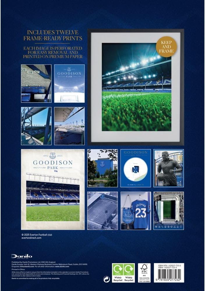 OFFICIAL MERCHANDISE: Authentic Everton FC 2026 Goodison Park A3 wall calendar featuring iconic stadium imagery and historic club moments