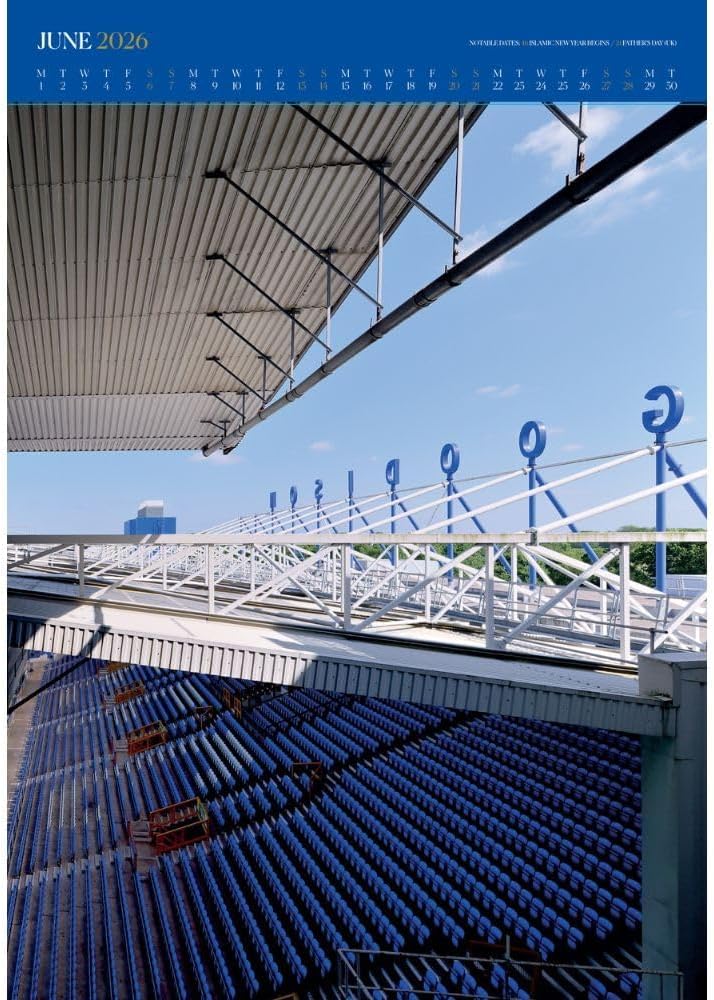 Celebrate Goodison Park’s legacy with this official 2026 Everton FC A3 Deluxe Wall Calendar. This collector’s edition features twelve stunning, frame-ready prints capturing the majesty of the Toffees’ historic home ground. Each premium quality image is perforated for easy removal, allowing you to create your own Goodison Park gallery. Measuring 42 x 30 cm, this calendar combines practicality with nostalgic beauty, showcasing various perspectives of the stadium, from pitch-side views to architectural details. The month-to-view format helps you track important dates while surrounded by breathtaking football imagery. The calendar includes iconic shots of the stands, memorable stadium features, and the pristine playing surface that has hosted countless memorable matches. Complete with organising stickers, this official Everton merchandise is printed on premium paper and makes an essential piece for any devoted Blues supporter. Perfect for home or office, it’s a fitting tribute to one of football’s most storied venues.