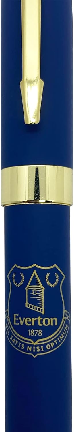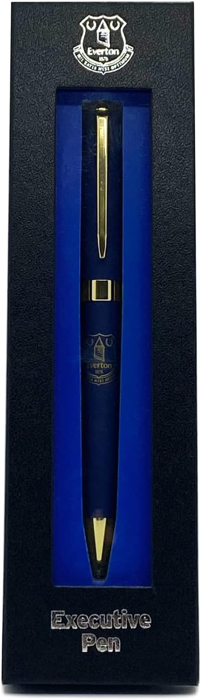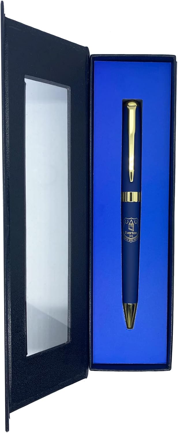 Official EFC pen presented in club design gift box Satin blue barrelled ballpoint pen with black ink; gold print club crest Blue magnetic open lid gift box with window; club crest foil print Superb executive gift item