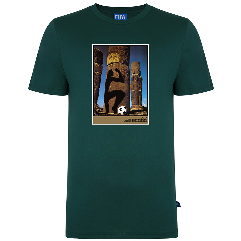 FIFA 1986 Poster Tee The FIFA Officially Licensed 1986 Poster Tee. Features the Official Poster of the 1986 World Cup held in Mexico. Colombia were originally supposed to host the tournament but had to withdraw mainly due to economic reasons, so Mexico were selected to step up and as a result became the first country to host the tournament more than once. 100% Cotton.