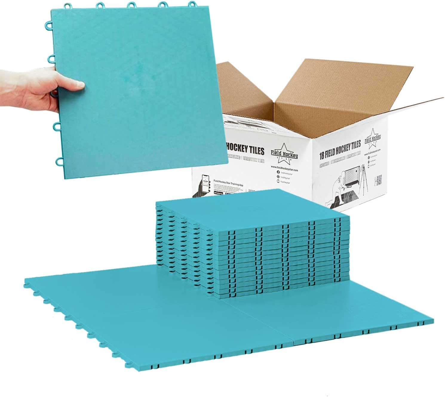 Field Hockey Star Flooring is removable indoor & outdoor sport surface for field hockey players. Create safer training for you and your training equipment Field Hockey Star Flooring is designed and tested by professional players and coaches. Tiles are durable and high quality and are easily portable and can be used anywhere for your training Field Hockey Star Flooring can be used by virtually any field hockey player anywhere by placing it to any flat surface. Field hockey flooring can be used outside all year. Includes 18 tiles( 2 sq.m) in one box