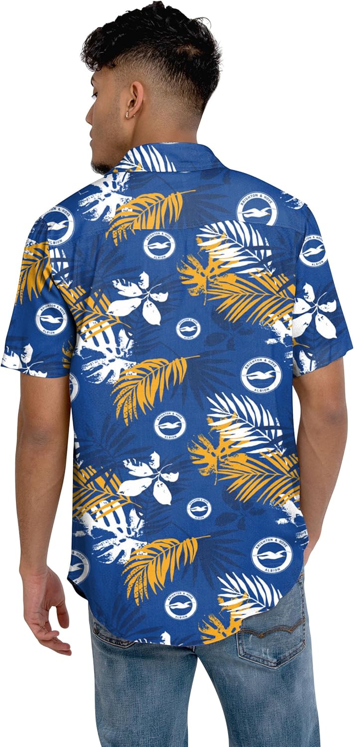FOCO Brighton & Hove Albion FC Football League One EPL Floral Button Up Smart Short Sleeved Dinner Dress Shirt