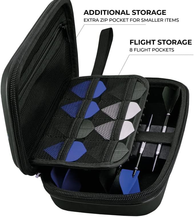 Storage for 8 additional sets of flights and an additional zip pocket for small items.