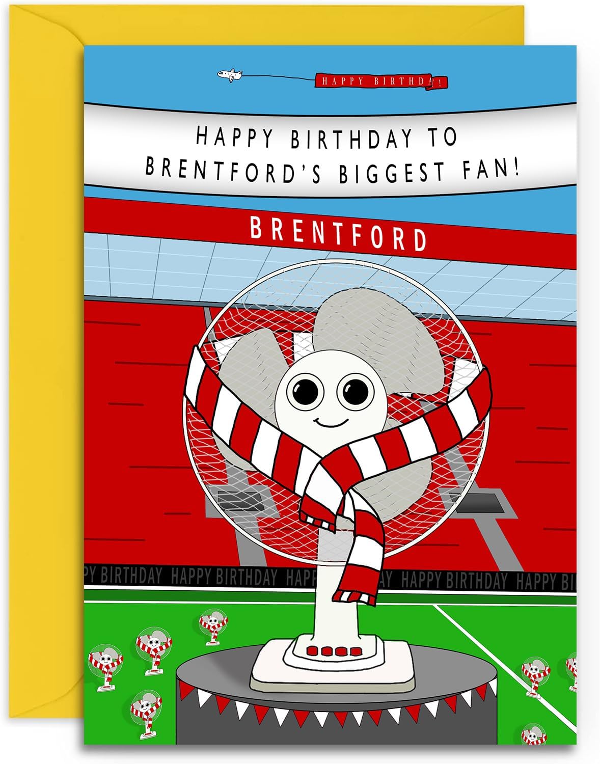 Football Fan Birthday Card – Brentford Fan – A5 Sized Card (148mm x 210mm) with Yellow Envelope. Designed and Printed in the UK