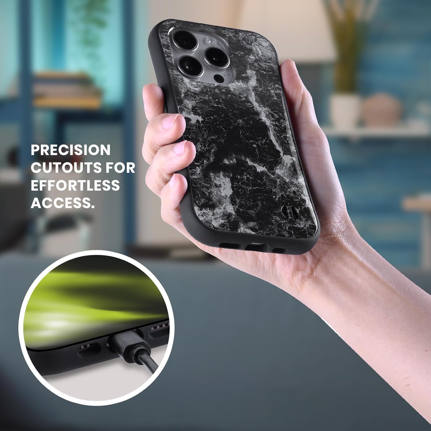 Easy Access. Flexible, touch-sensitive gel shields volume and power buttons, whilst keeping ports and speakers fully accessible.