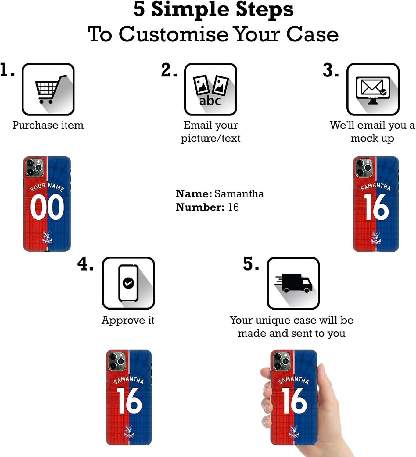 Purchase Item > Email your picture/text > We’ll email you a mock up > Approve it > Your unique case will be made and sent to you