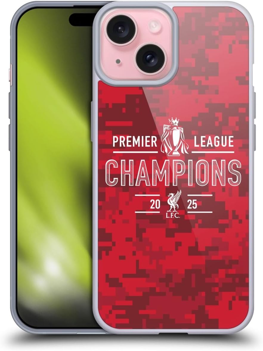 Head Case Designs Officially Licensed Liverpool Football Club Digital Camouflage 2025 Premier League Champions Gel Case [Military Grade Protection] Compatible With Apple iPhone 15