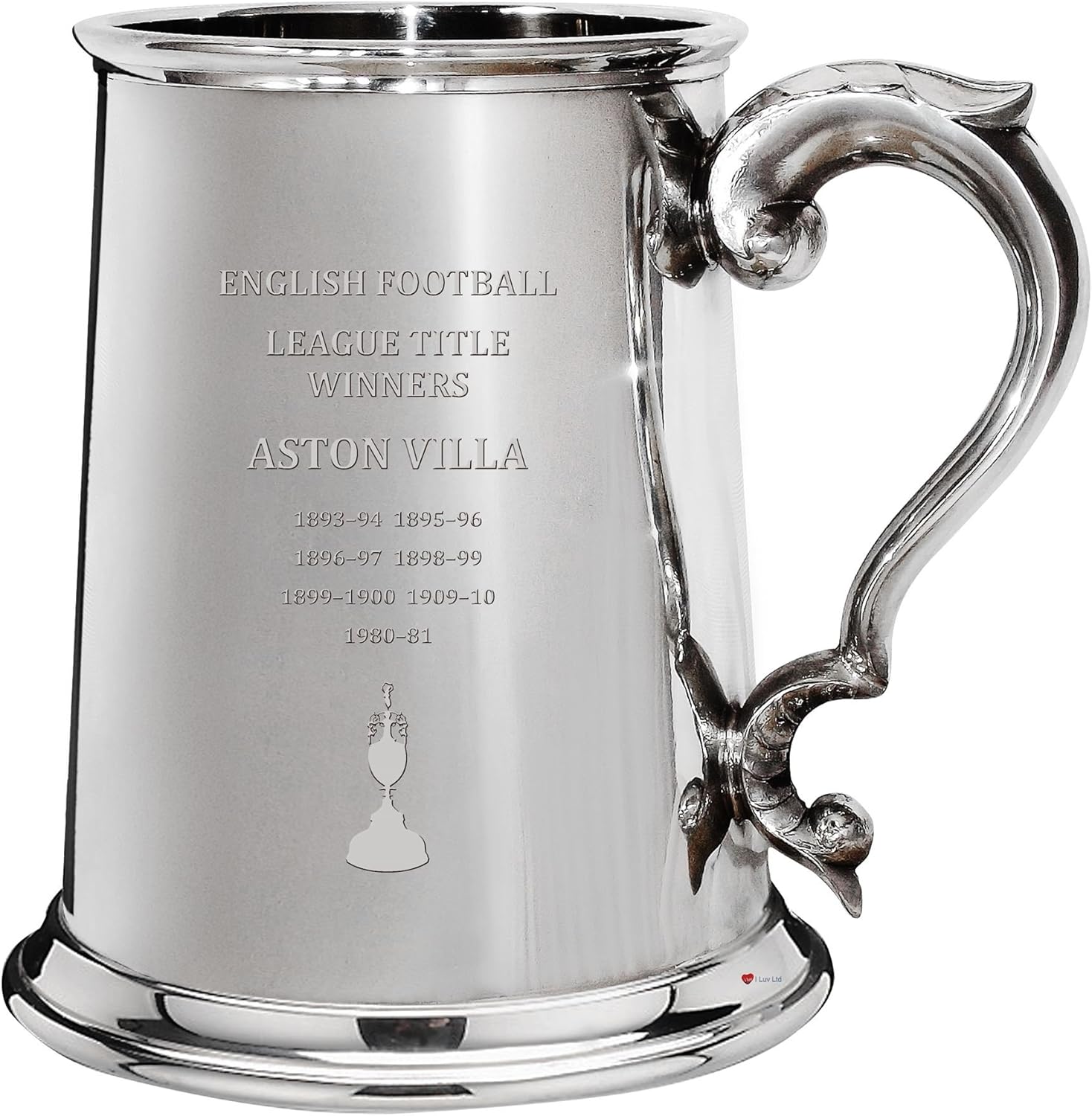 This Beautiful 1pt Pewter Tankard is engraved with the Football Club name and the number of times they have won the English 1st Division & Premiership Titles winners.