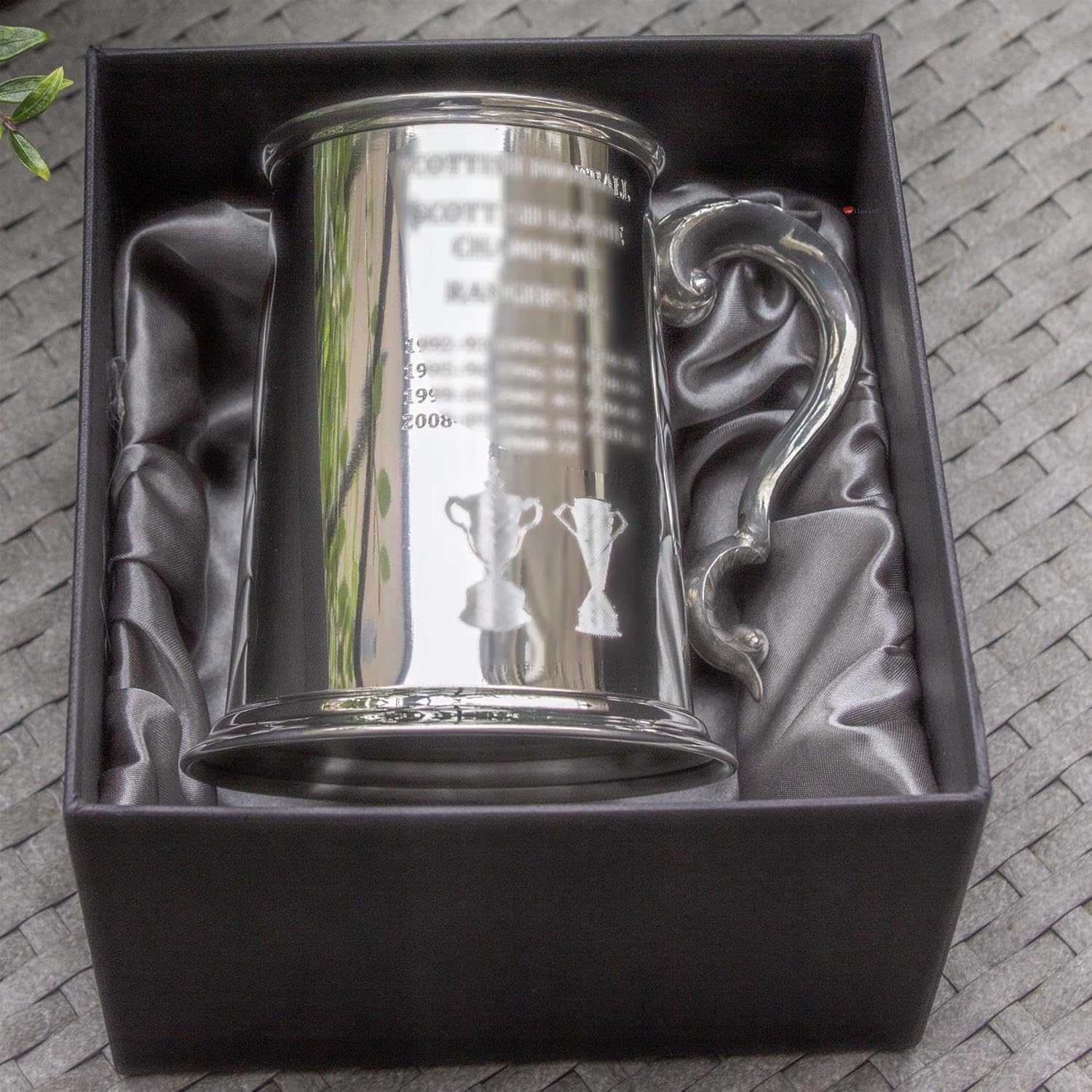 This Beautiful 1pt Pewter Tankard is engraved with the Football Club name and the number of times they have won the English FA Cup.