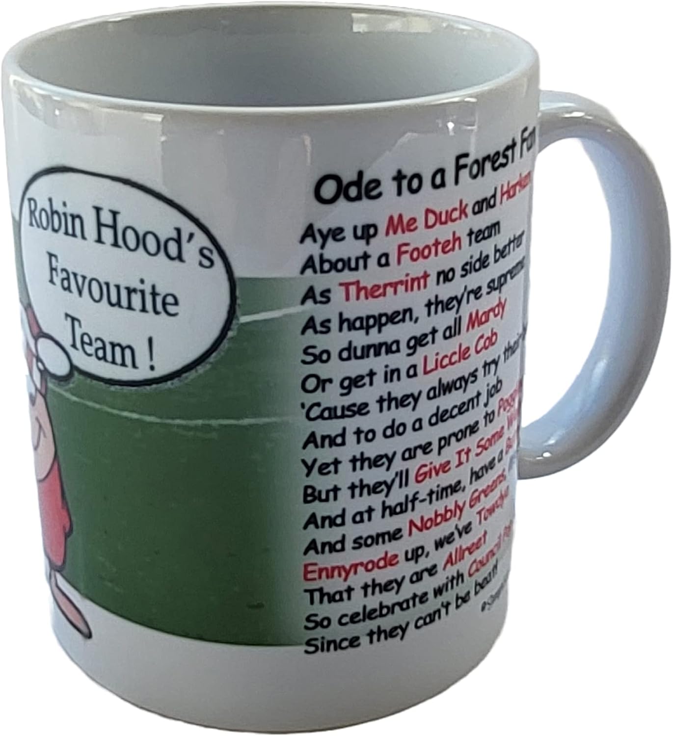 This is a high quality ceramic mug. Featuring a humorous poem composed by Suzie Dale of Impish Odes. Using local terms and lingo it celebrates the dedicated Nottingham Forrest supporter or fan. Suzie has also provided a handy translation on the reverse of the mug, explaining the more obscure and quirky phrases related to supporting such a hotshot football side. We use only the highest quality mugs and printing materials. They are fully dishwasher and microwave safe and will NOT fade after a few washes. The mug is also available with additional Gift Wrap options.