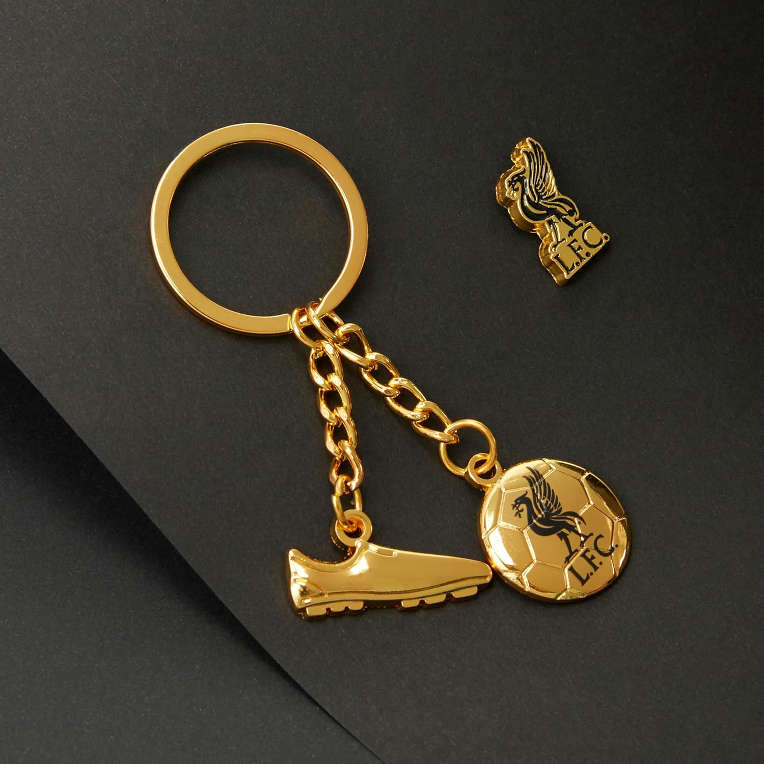 Accessorise in style with our Liverpool keyring and pin badge set. Crafted with the club’s emblem and football-themed charms, it’s the ultimate choice for showcasing your support.