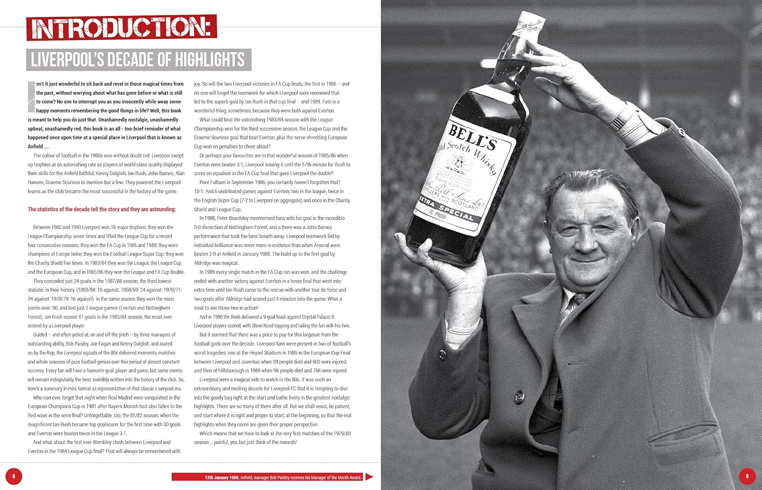This book provides an insight into Liverpool FC during the 1980s, one of the most successful periods for one the most famous football clubs in the world. Liverpool Football Club was the team that dominated English and European Football throughout the 1980’s. The book charts the highlights of being European, League, FA and League Cup Winners through to the devastation of the Heysel and Hillsborough disasters. With additional career player retrospectives, a special focus on Bob Paisley, Joe Fagan and Kenny Dalglish the managers who guided the club and in depth statistical information, this limited edition book looks at some of those magic moments in this unique collection using rare photographs and images of the players teams and managers.