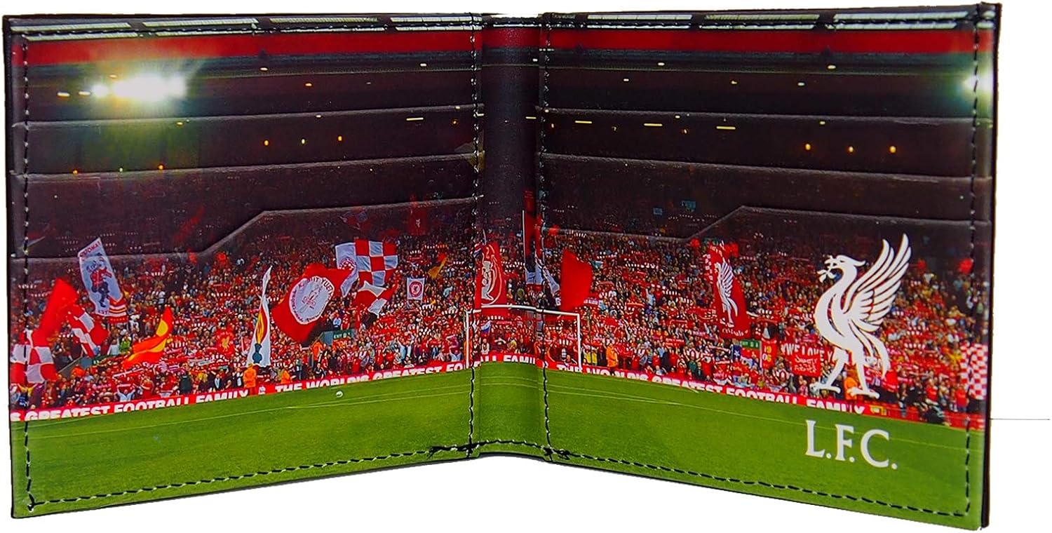 Our Official Liverpool FC Faux Leather Wallet is an essential gift for any Reds fan. You can opt for the classic black wallet featuring a note compartment alongside card holder and photo window, or the Stadium wallet which opens to a full-size image of Anfield’s West Stand featuring a note compartment and 3 card slots. Both wallets are finished with a Liverpool club crest embossed to the front. A perfect gift for any Liverpool fan to show their support at Anfield or from home.