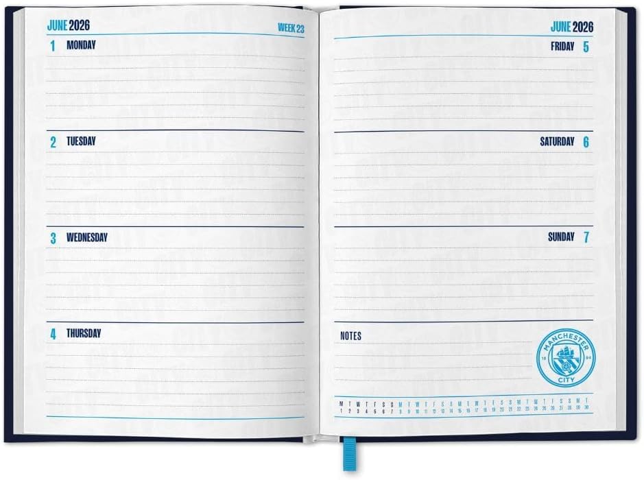 Official Club Merchandise: The Manchester City A5 Diary 2026 is an official product, perfect for loyal fans of the club to stay organized while showing their support.