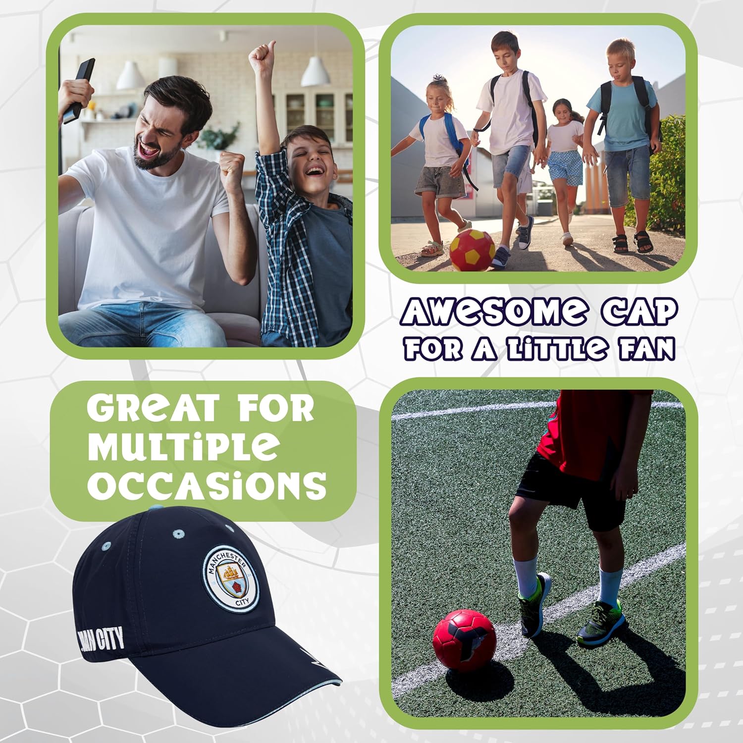 This officially licensed Manchester City cap blends style with comfort. The adjustable strap ensures a secure fit, making it perfect for all-day wear. Let your young fan show their City pride!