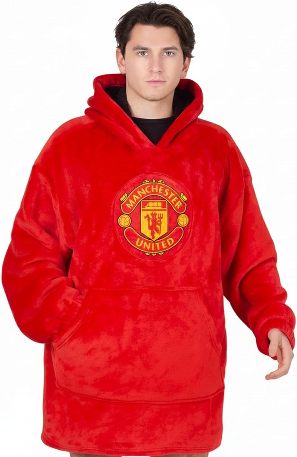Manchester United Adults Oversized Hoodie Blanket – Sherpa Fleece Lined Official Football Gift
