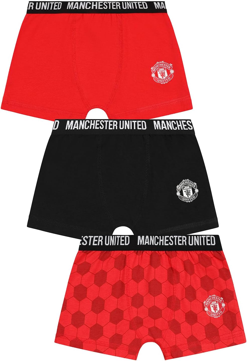 Manchester United Boys 3 Pack Football Club Boxer Shorts Cotton Boxers Multipack Trunks Kids Underwear