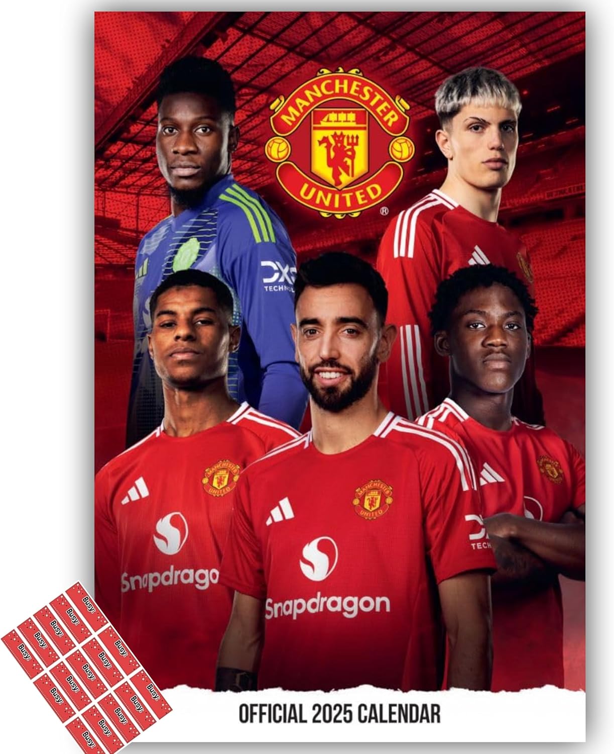 Manchester United Calendar 2025 Official Man U A3 Wall Calendar Football Gift Present with FREE Organising Stickers Included