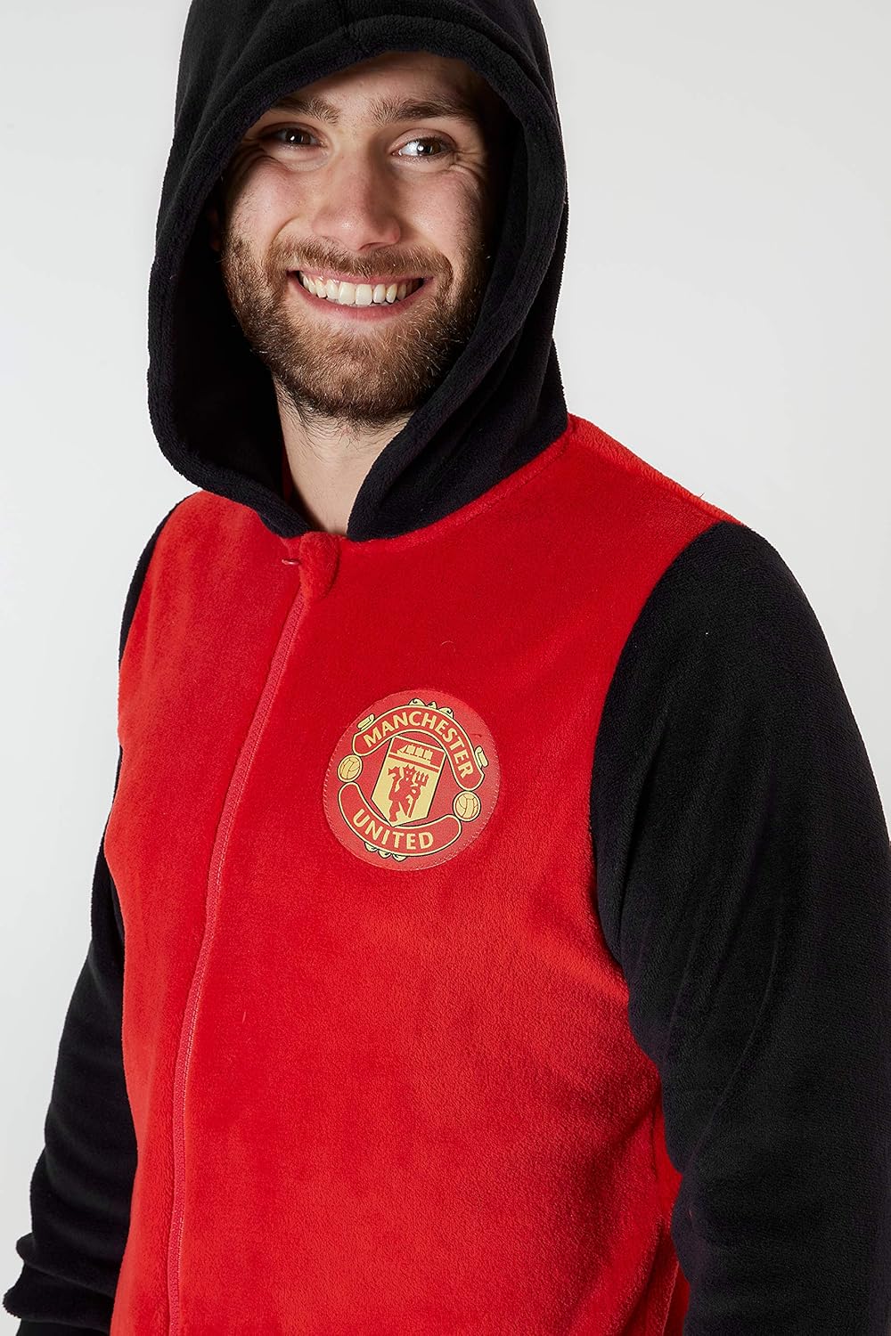 SUPER SOFT AND COMFORTABLE — Our fluffy Manchester United F.C onesies for men and teenagers are super warm and comfortable. They are made from super soft fleece material and feature a zip to open and close them, hood and cuffed bottoms, making them perfect for all heights.