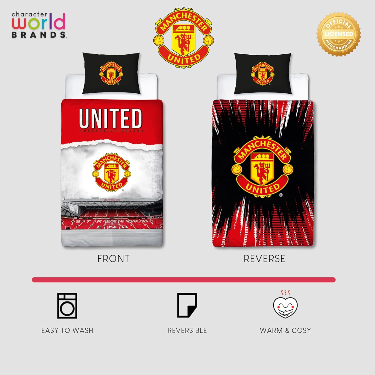 OFFICIAL PRODUCT: Officially licensed by Manchester United Football Club, this bedding set includes a duvet cover and pillowcase, and features a shot of their famous Old Trafford stadium with their iconic club badge