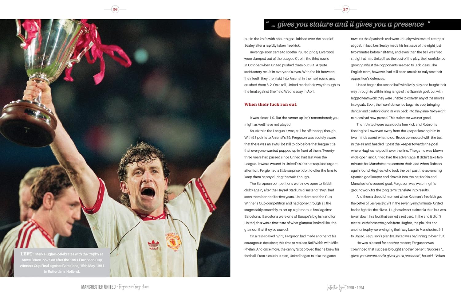 Sir Alex Ferguson was one of the greatest managers to grace the stadiums of the world. He announced his retirement as manager of Manchester United in 2013 after 27 years in the role. He went out in a blaze of glory, with United winning the Premier League for the 13th time and he is widely considered to be the greatest manager in the history of English football. A constant element has been the quality of Alex Ferguson’s league-winning squads and United’s run of success, which included winning the Champions League twice in 1999 and 2008. This lavishly illustrated hardback book charts the enormous success of the club during Sir Alex Ferguson’s 27-year reign at Manchester United with profiles of all the big matches and players that guided the Club to its myriad of trophies.