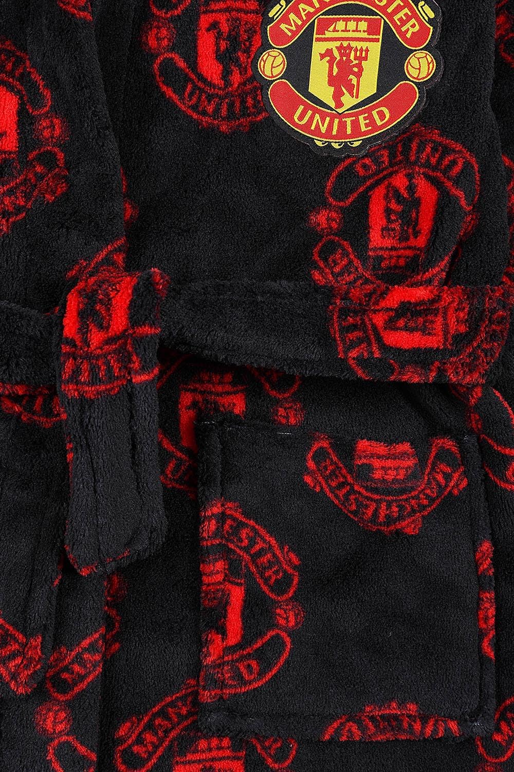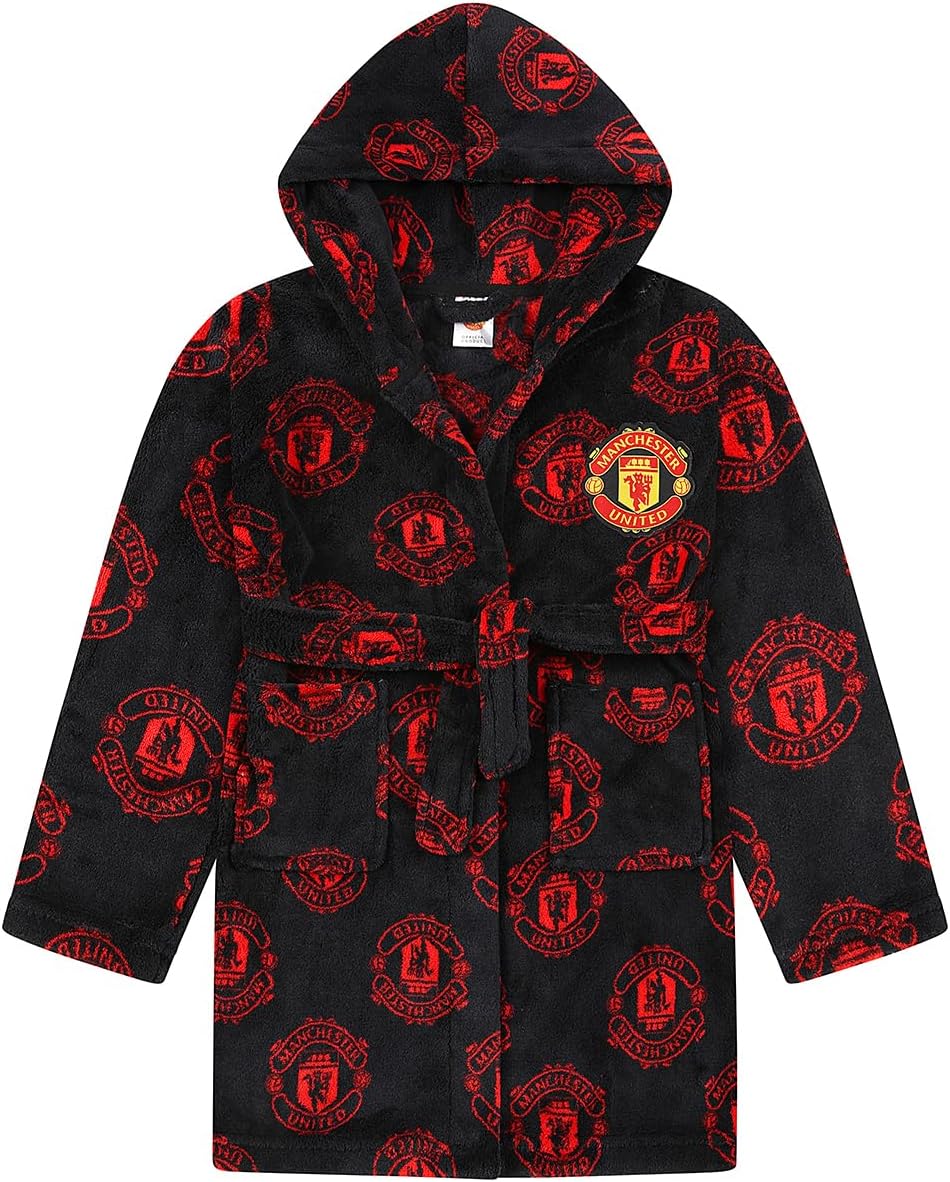 Mens Manchester United Football Club Dressing Gown. This Luxury mens hooded dressing gown comes in a super soft fleece material with an all over crest print. This robe would make an Ideal gift for any United fan