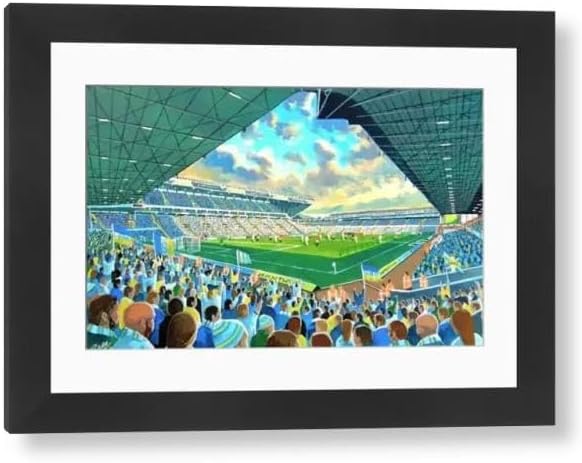 Framed Print depicting Elland Road is a football stadium in Leeds, West Yorkshire, England, which has been the home of Leeds United since the clubs formation in 1919.[6] The stadium is the 14th largest football stadium in England, and the fourth largest outside the Premier League. Wood effect frame, card mounted, 16×12 archival quality photo print. Overall outside dimensions 22×18 inches (58x48cm). Environmentally and ozone friendly, 40mm wide x 15mm Polycore® moulding has the look of real wood, is durable and light and easy to hang. Biodegradable and made with non-chlorinated gases (no toxic fumes) it is efficient; producing 100 tons of polystyrene can save 300 tons of trees! Prints are glazed with lightweight, shatterproof, optical clarity acrylic (providing the same general protection from the environment as glass). The back is stapled hardboard with a sawtooth hanger attached. Note: measurements provided are estimated outer dimensions, which include both the image and the frame. While we aim to keep sizing consistent, exact dimensions may vary slightly due to differences in print size or production requirements, which may result in a variation in the overall size (up to approximately 2.5cm (1″)). Not for commercial re-sale, publication or reproduction, digitally or otherwise. Copyright Sports Stadia Art Ltd.