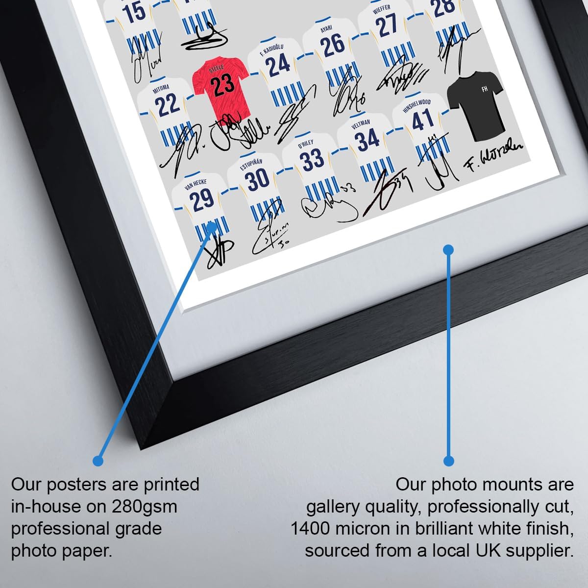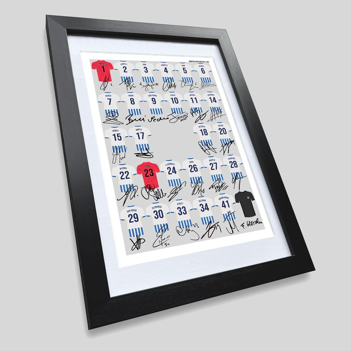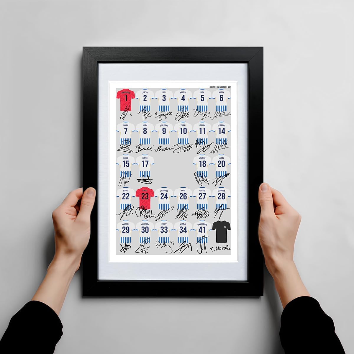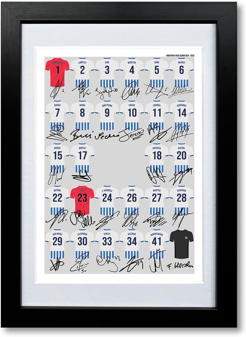 Mounted Gifts Trading Brighton & Hove Albion team squad 2024-2025 Signed poster print framed picture photo autograph gift 24/25 Welbeck Joao Pedro Dunk (A3 poster only)