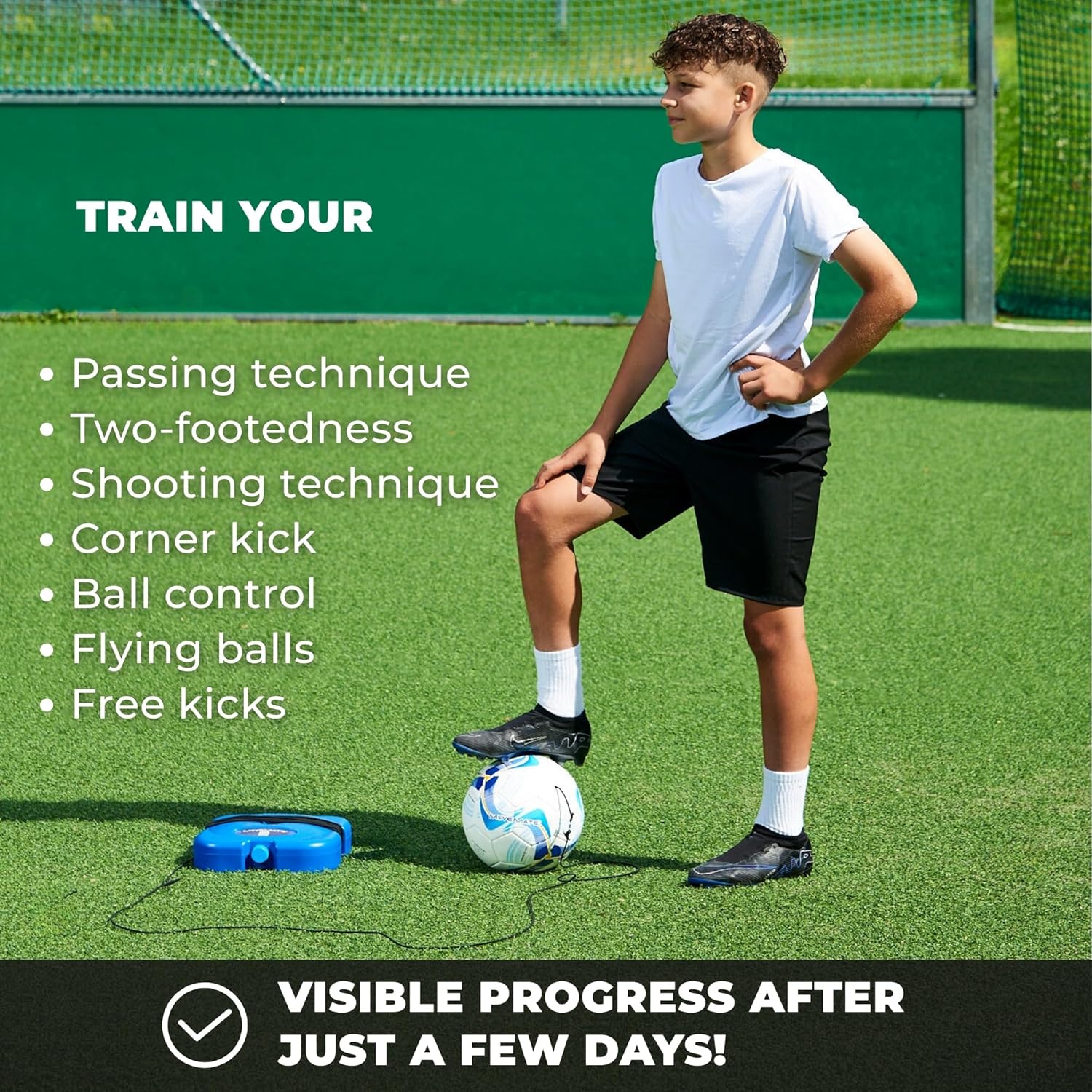 WHERE & WHEN YOU WANT – From now on, you can practise your shooting and passing skills anytime, anywhere, whether in the garden, in front of the driveway or on the football pitch. Your friends or partner will soon be wondering how you managed to make such rapid progress 😉