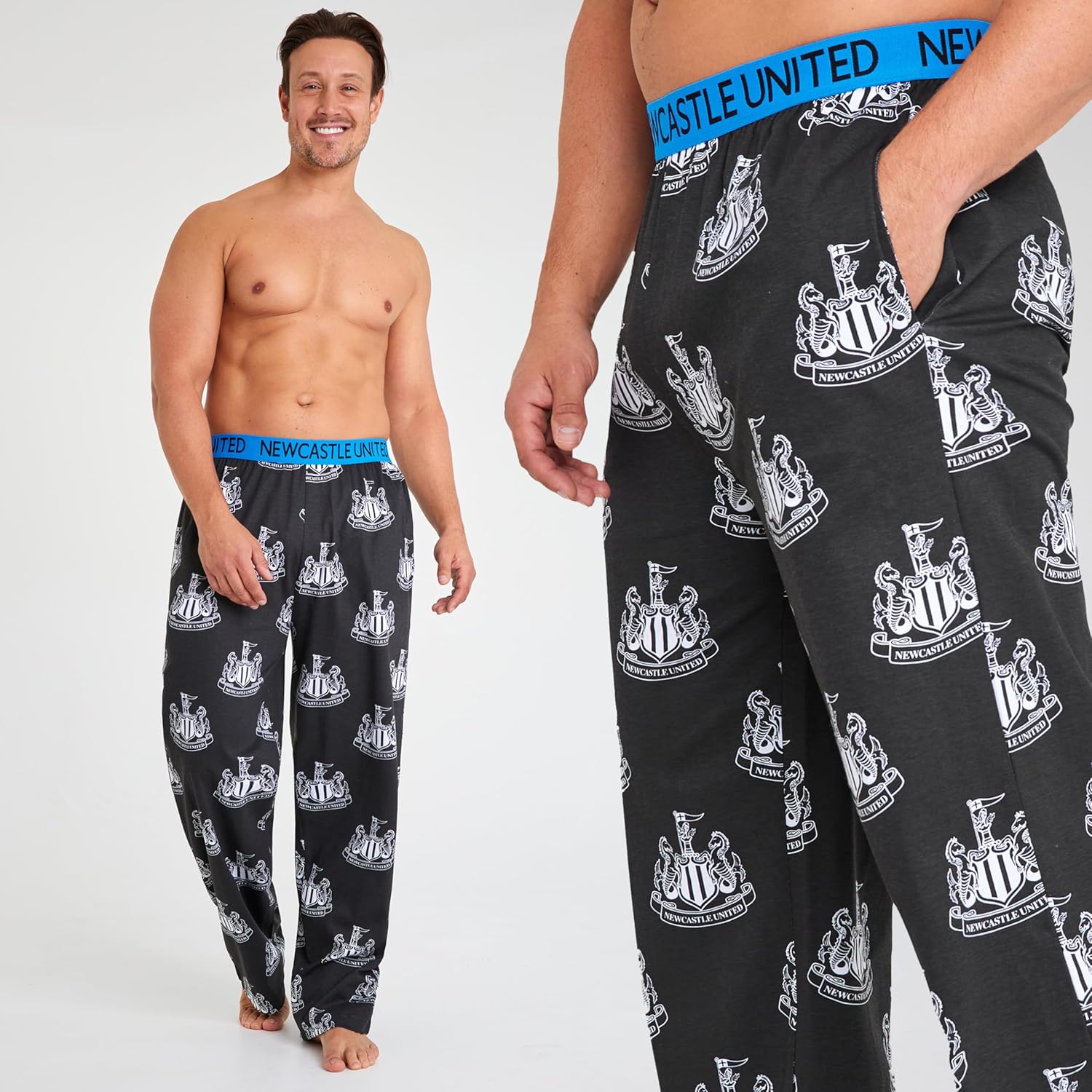 Kick off your loungewear collection with these officially licensed Newcastle United F.C. mens lounge pants. This men’s nightwear is made from soft and breathable material, with a comfy elasticated waist, they’re perfect for relaxing after work, lounging on the weekends, or catching a comfortable night’s sleep. See images for more features and details.