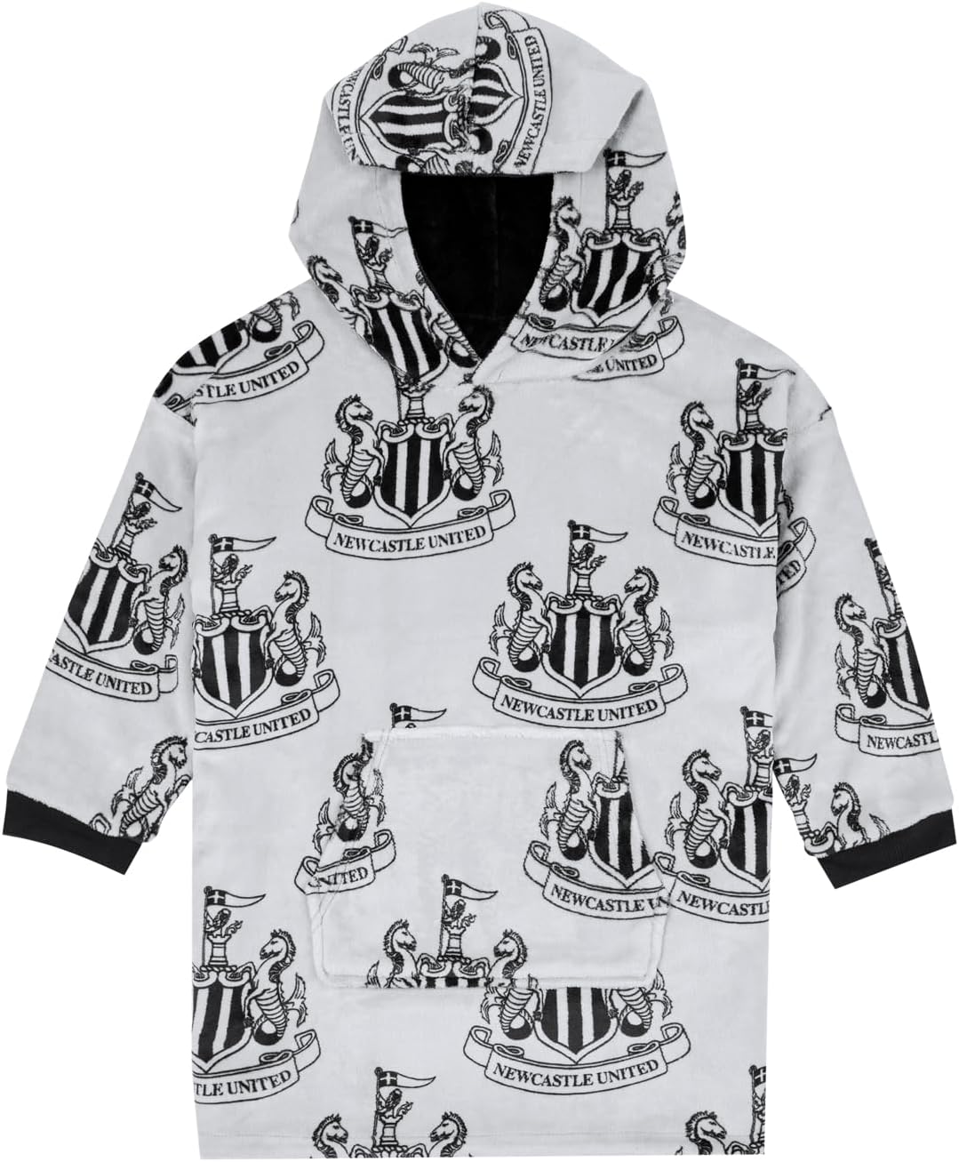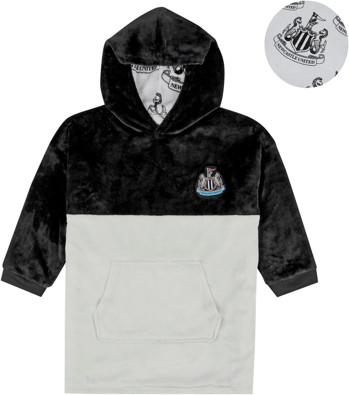 Newcastle United F.C. Reversible Fleece Hoodie For Boys | Oversized Hooded Lounge Gown | Soft Fleece Blanket | Football Gift For Boys & Girls | One Size Fits All Age 7-13 Years Grey