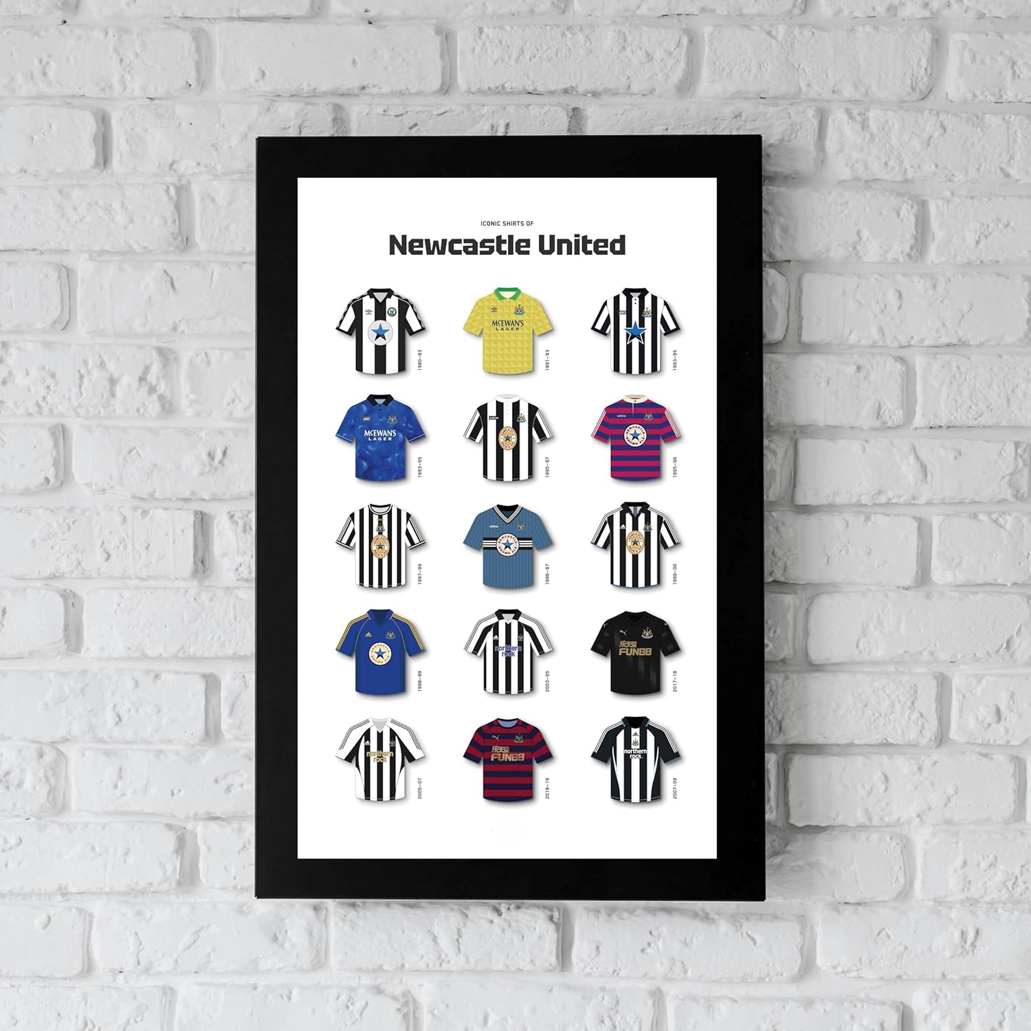 IDEAL GIFT: Perfect memorabilia for Newcastle United supporters, featuring iconic shirts from the Premier League era in a stylish wall art format